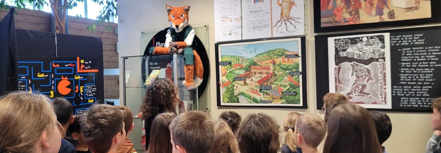 Sortie Médiathèque ce218 avril 2025 dans CE2 par Pascaline Plaire Mardi 15 avril nous sommes allés à la médiathèque de Moirans où nous avons pu assister à une exposition du « Renart ».